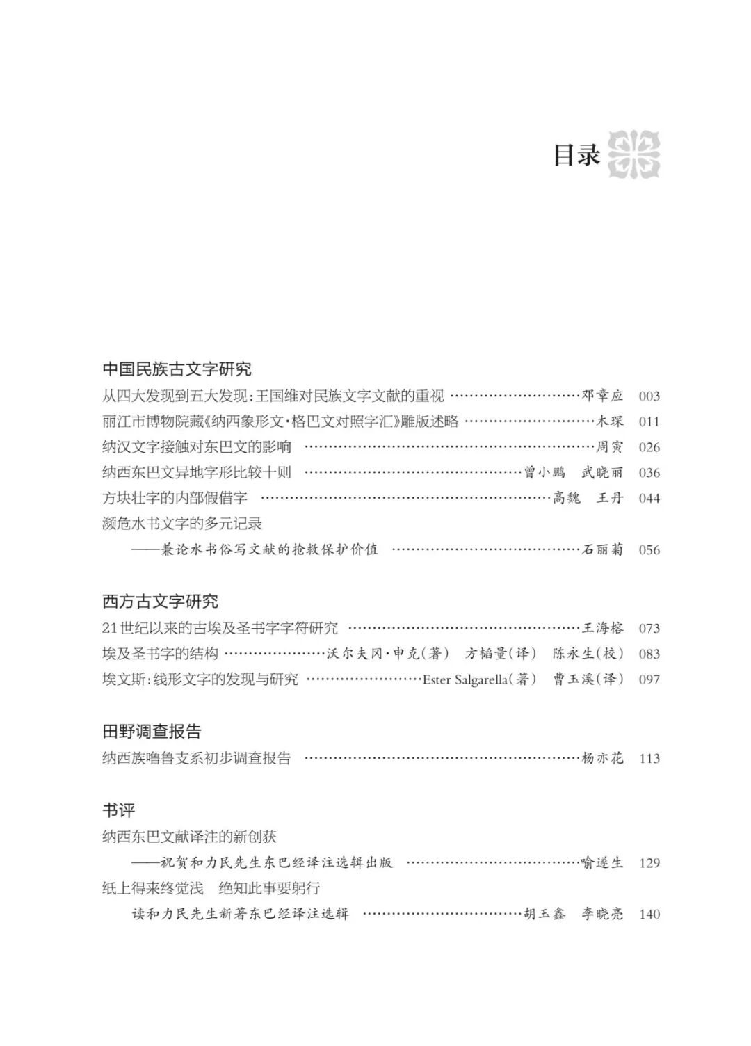 本辑第四部分为书评。书评围绕《“中央研究院”藏纳西东巴经全文翻译选辑》展开深度评析。该书的学术价值主要体现在两个方面:其一,精选台北傅斯年图书馆所藏八种十册东巴经珍本,文献稀缺性显著;其二,采用 “四对照” 的译注模式 —— 以原文图像、音标记音、逐词对译、整页意译同步呈现,为东巴经全文释读提供了清晰、系统的研究路径。时至今日,该书价值远超预期:不仅昭示濒危文献抢救的关键成果,更率先探索出两岸学界共护文化遗产的学术协作范例。本辑特刊发两篇关于该书的深度书评,以飨读者。