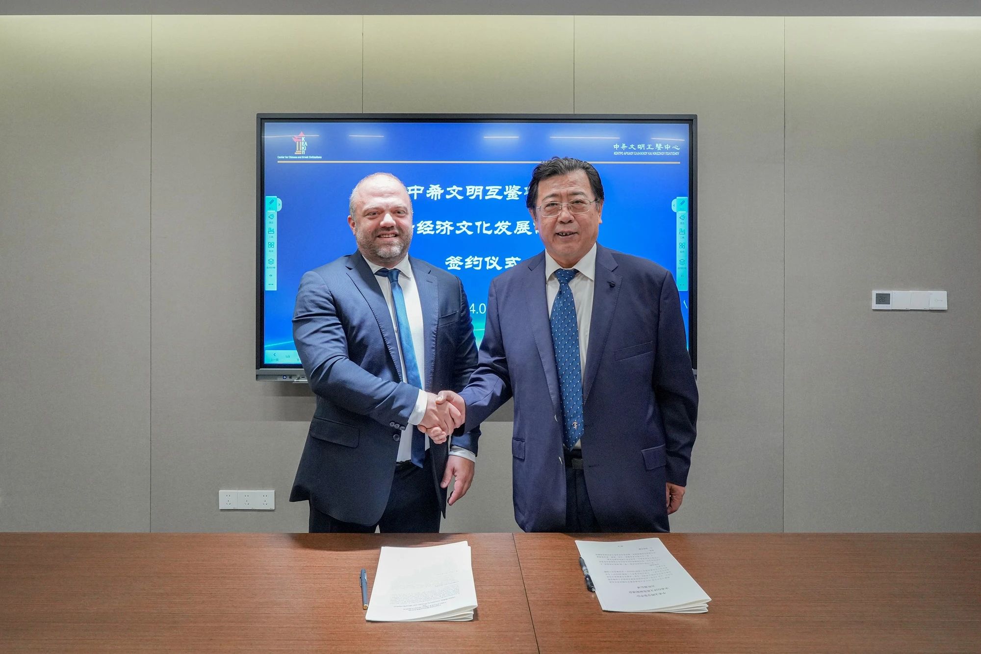 签约仪式上,中希文明互鉴中心中方主任崔延强和中希经济文化发展促进会会长乔治·卡格里斯作为代表共同签署了备忘录。崔延强表示,此次合作将为中希两国在各领域的交流与合作注入新的活力。乔治·卡格里斯认为,深化中希经济文化合作将为两国企业和人民带来更多发展机遇。