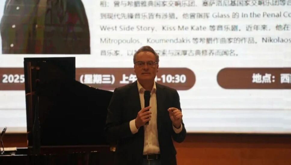 工作坊由音乐学院副院长黄君教授主持并致辞,音乐学系钢琴教研室主任朱罡老师担任现场翻译。中希文明互鉴中心作为联合主办方,深度激活自身文化交流桥梁效能,为师生打造与希腊音乐家面对面交流的高端对话平台。