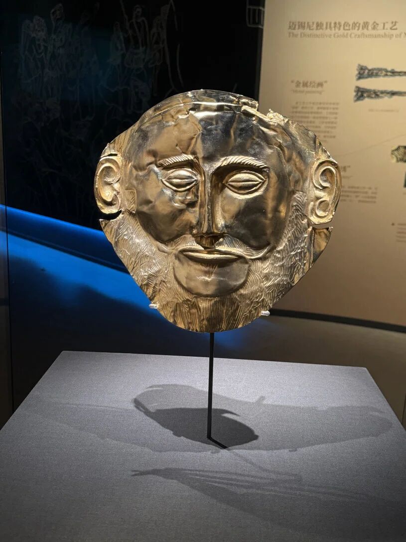张思伟继续分享观展体会:“希腊雕塑大多凸显五官、神情舒展,而三星堆文物则庄严肃穆。希腊展中的金制花环精美灵动,中国则更多展出礼器。最让我触动的是德尔斐神谕‘认识你自己’,仿佛文明在向我低语。”