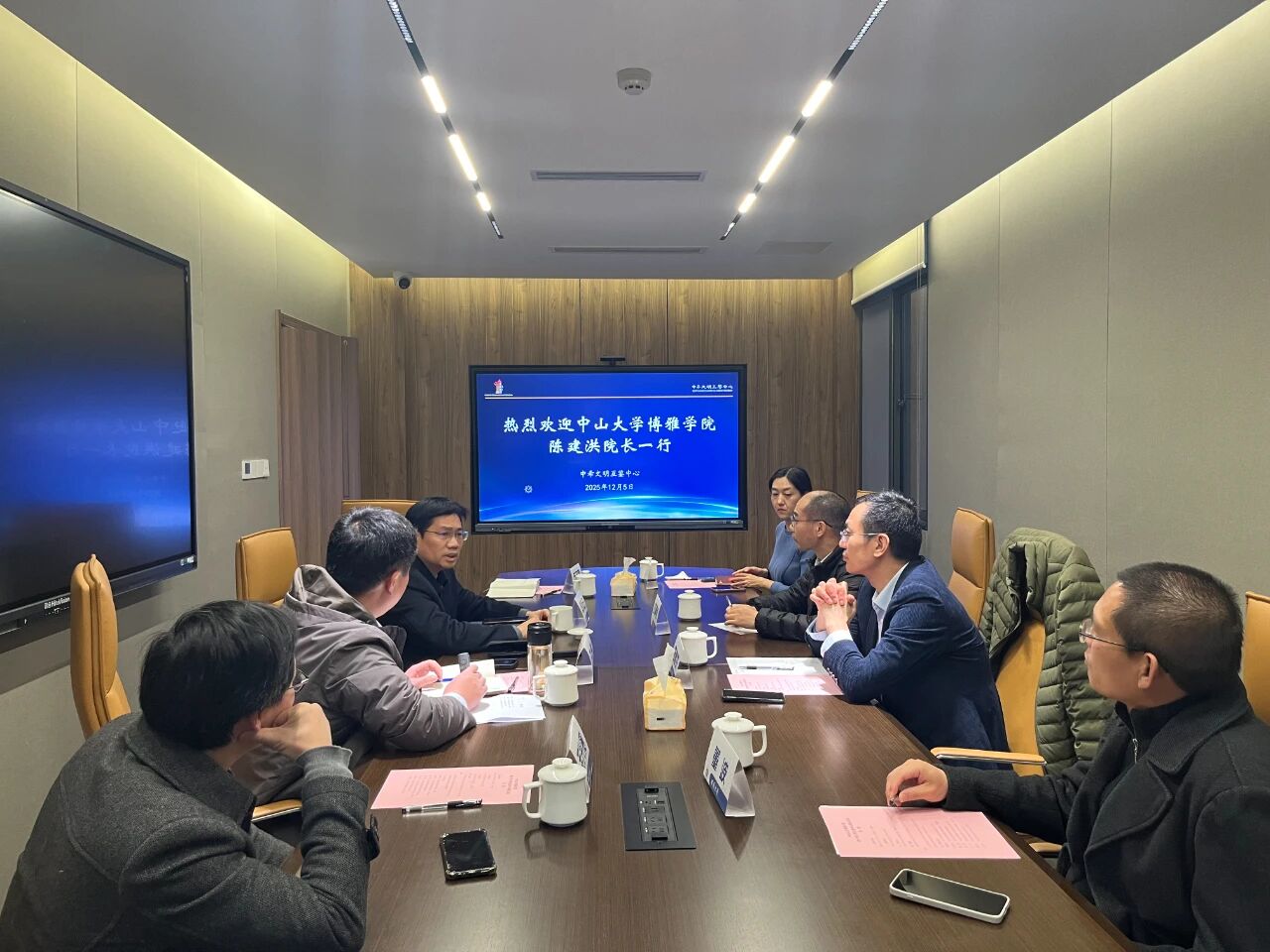 12月5日,中山大学博雅学院陈建洪院长一行到访中希文明互鉴中心调研交流,中心常务副主任兼秘书长王勇、副主任郭美云以及国家治理学院代表等参加座谈会。