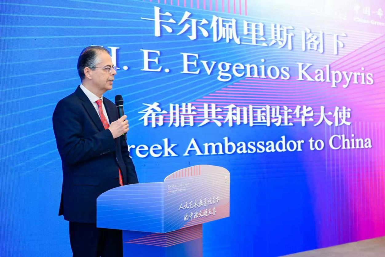卡尔佩里斯大使在致辞中通过丰富生动的案例,阐述了中希两大文明对艺术与艺术教育的高度重视,强调艺术在人类文明交流互鉴中的独特价值,并介绍了希腊驻华使馆近年来在推动中希人文交流方面所开展的积极实践与成果。