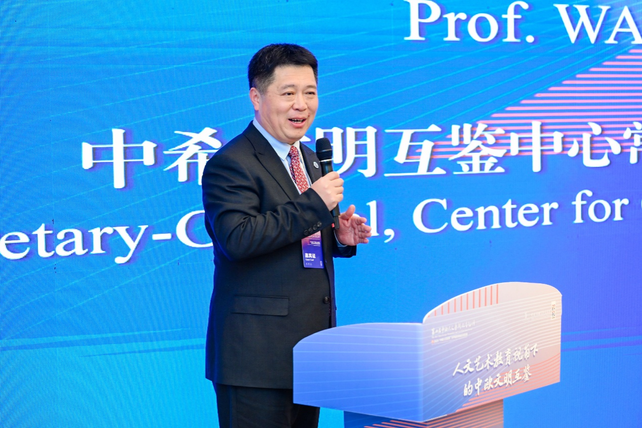 王勇秘书长代表中心对各位嘉宾的到来表示热烈欢迎。他指出,艺术是促进文明交流互鉴的重要载体,而文明的互鉴互融又是激发艺术创新的重要路径;他向与会嘉宾系统介绍了中心成立近三年来,围绕学术研究与推广、国际联合人才培养、高水平人文交流和数字化四大领域推进文明互鉴的实践探索,并呼吁社会各界持续关注和支持中希文明互鉴中心的发展。