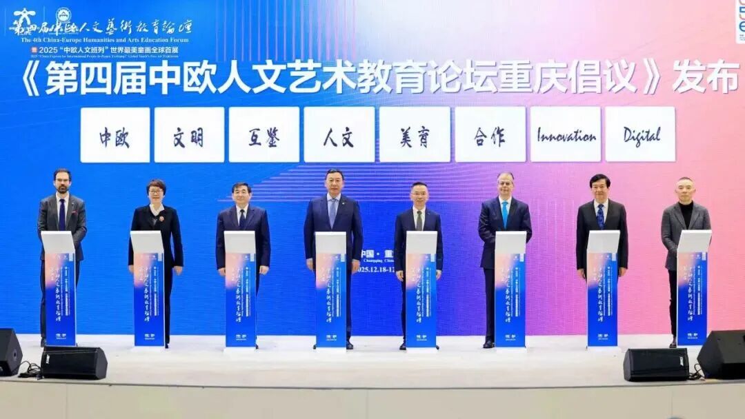 2025年12月18-19日,由教育部中外人文交流中心联合中欧人文艺术教育联盟、四川美术学院主办的第四届中欧人文艺术教育论坛在重庆举行。论坛以“中欧人文交相辉映,数字美育万千气象”为主题,汇聚了近300名在人文艺术教育方面具有专长特色、热心推进中欧人文艺术交流的大中小学、企事业单位、社会团体等单位代表。