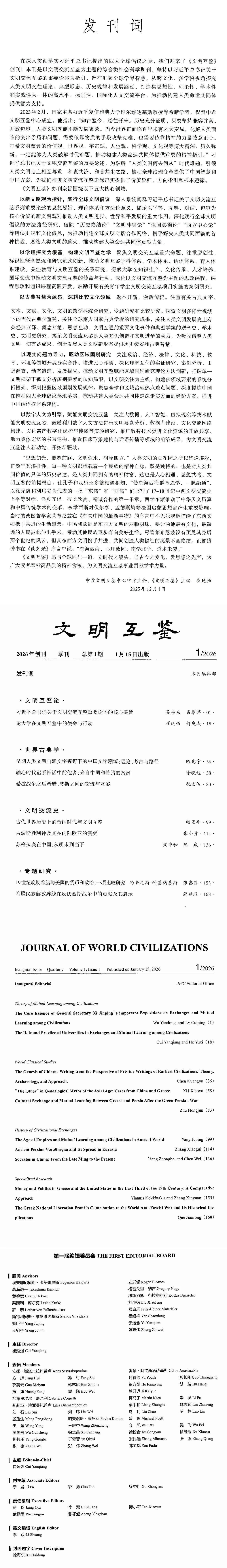《文明互鉴(中英文)》以习近平总书记关于文明交流互鉴的重要论述为根本遵循,聚焦五大核心办刊领域。其一,以新文明观为指针,深入阐释全球文明倡议的实践路径,破除各类错误史观和文化偏见;其二,以学理探究为根基,推动文明互鉴相关学科体系、学术体系等建设,关注教育与文明互鉴的深度融合;其三,以古典智慧为源泉,深耕比较文化研究,激活传统文明的当代价值;其四,以现实问题为导向,赋能区域国别研究,提炼中国参与全球治理的经验方案;其五,以数字人文为引擎,借助大数据、人工智能等技术为文明交流互鉴注入新动能。