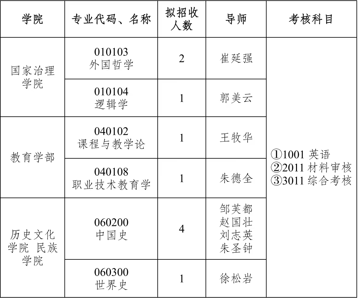 各招生学院将按照学校文件,对考生材料进行形式审核和内容评价,对形式审查通过者,进行材料评价。根据材料评定结果,按照一定比例,择优确定进入后续综合考核人员名单,在历史文化学院网站进行公示。