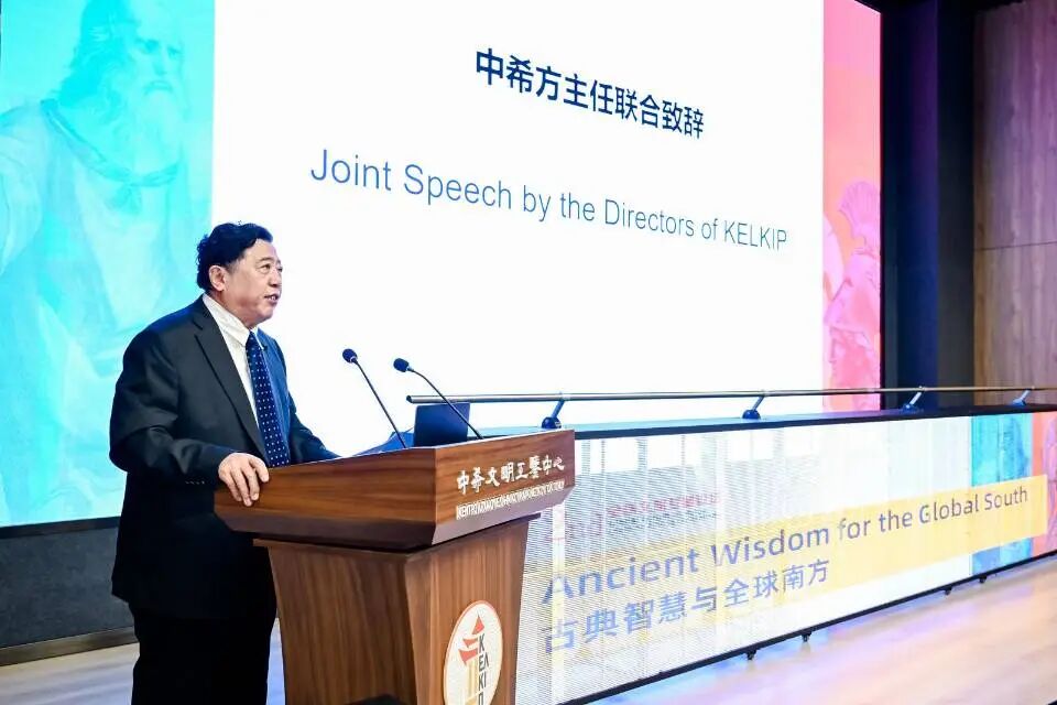 刚才,我们见证了“全球柏拉图学者共同体”和“全球希腊研究共同体”两个学术联盟的组建,又见证了中希文明互鉴中心古典学研究院和区域国别研究院两个研究机构的揭牌,这是本次论坛取得的标志性成果。有人经常问,文明互鉴中心究竟做什么?我很难用一两句话给出一个柏拉图式的定义。打个比喻或许更能形象的表达。中希文明互鉴中心好比是一架飞机。前不久中心获批设立“文明互鉴战略发展实验室”,给这架飞机装上了引擎。没有数智化赋能,古典学永远停滞在古典,无法关照当下、走进今天的生活世界。同样,没有数智化赋能,区域国别研究也往往流于从观念到观念,无法基于大数据分析、精准把握当下;今天我们又给这架飞机按上了古典研究院和区域国别研究院两只坚实有力的翅膀,确立了中心一体两翼的学科布局和学术架构,也即从古典关照反哺当下,从当下追溯重构古典。须知,离开古典关照的现代是空中楼阁,离开现代建构的古典无异于梦人呓语。没有“没有古典的现代”,也没有“没有现代的古典”;而中心这架飞机承载着的便是我们的学者和学生,他们跨越语言、肤色、性别、国籍,济济一堂,畅谈柏拉图和孔子,对话世界风云。打破文化疏离隔阂,解构种种文化中心主义,消除文化间的先验的“前概念”(pre—conceptions),播种和平、发展、公平、正义、民主、自由的人类共同价值的种子,做不同文明间的赫尔墨斯,我想,这正是学者的崇高使命,也是中心建设的根本宗旨。
